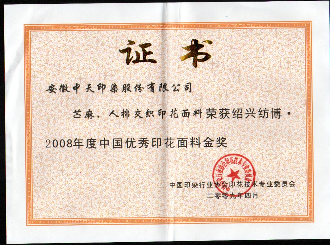 苧麻、人棉交織印花面料榮獲中國優秀印花面料金獎
