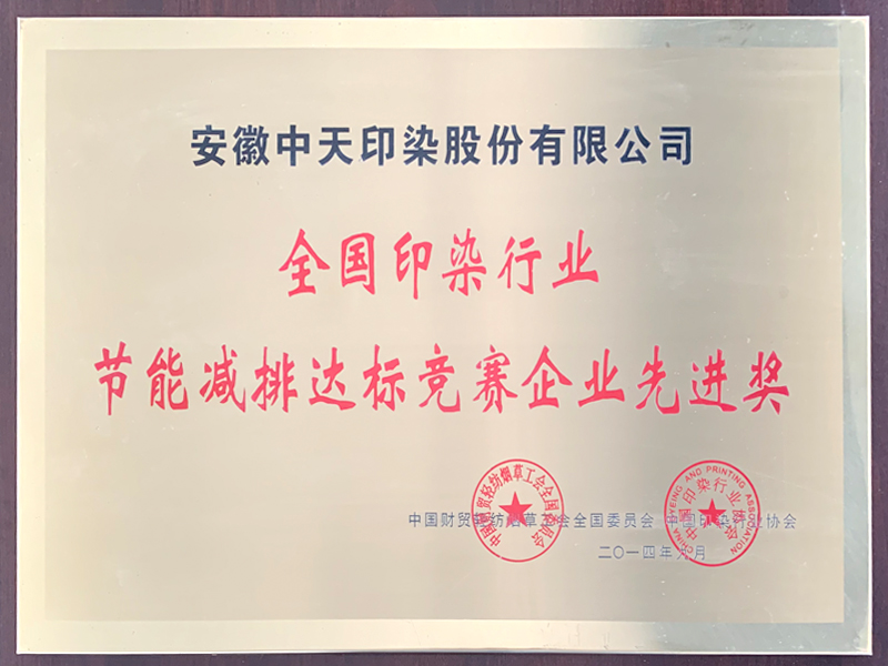 全國(guó)印染行業(yè)節(jié)能減排達(dá)標(biāo)競(jìng)賽企業(yè)先進(jìn)獎(jiǎng)